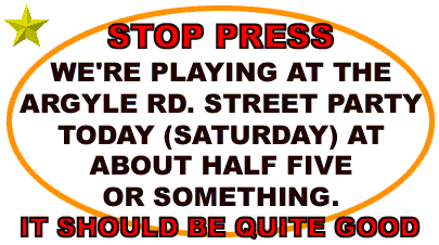 We're going down to the Argyle Road Street Party in Brighton this afternoon for a laugh and will probably play some tunes outside the Engineer where they'll have a little stage and fun and games going on all afternoon.